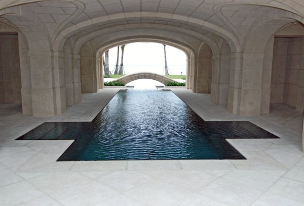 Residential intercoastal pool on pilings featuring a 360 degree champagne spa and a negative edge curtain wall overlooking Port Royals' back bay. Shot with 4000 psi gunite.