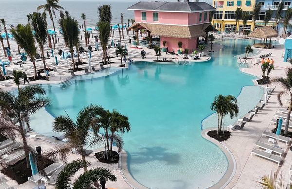 Prestige Gunite Fort Myers and Preferred Materials Southwest Concrete team up to deliver this fantastic resort pool. The pool is 12,309 square feet, requiring 327 cubic yards of 4000 psi gunite and 375 cubic yards of 4000 psi concrete.